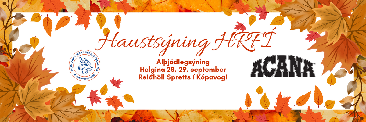 Þá er komið að haustsýningunni okkar, en um helgina verður alþjóðlegsýning haldin í reiðhöll Spretts í Kópavogi. Skráðir á sýninguna eru 1080 hundar ásamt 34 ungum sýnendum. Dæmt verður í 7 sýningahringjum samtímis og hefjast allir dómhringir kl. 9:00 báða daga og áætlað að úrslit hefjist kl. 14:45 báða daga. Gera má ráð fyrir að þau standi til u.þ.b. kl. 17.